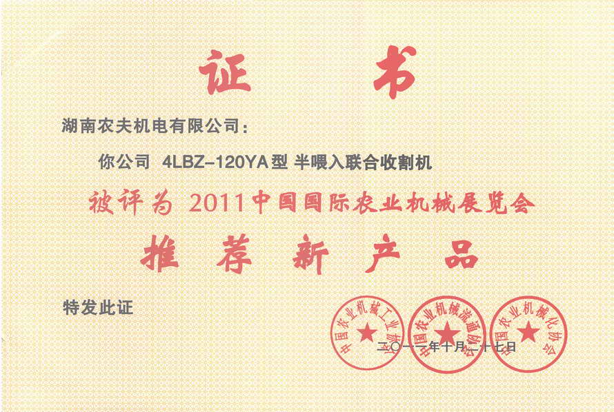 120YA推广鉴定证书
